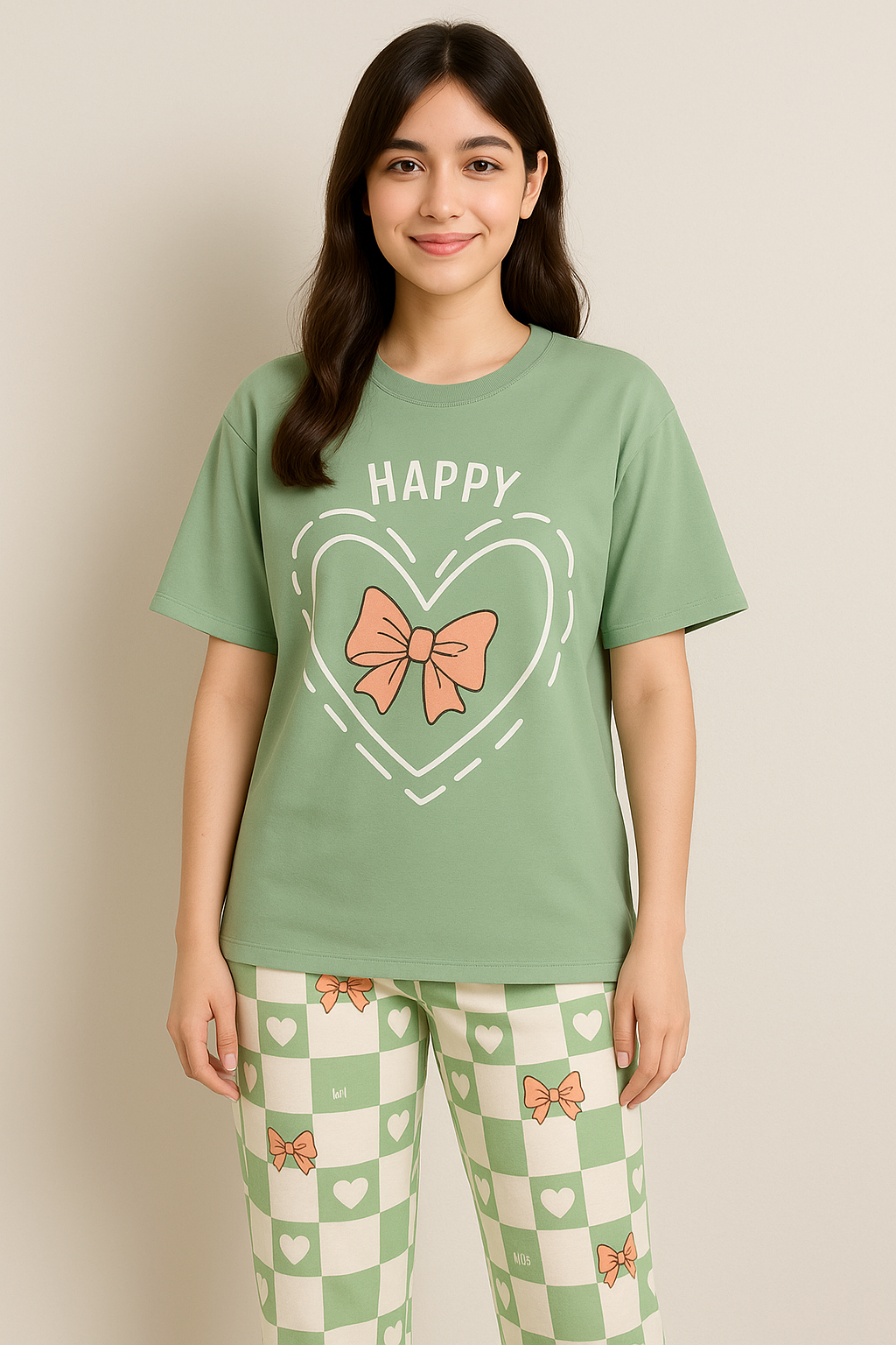 Olive Green Printed Night Suit Olive Green Printed Night Suit